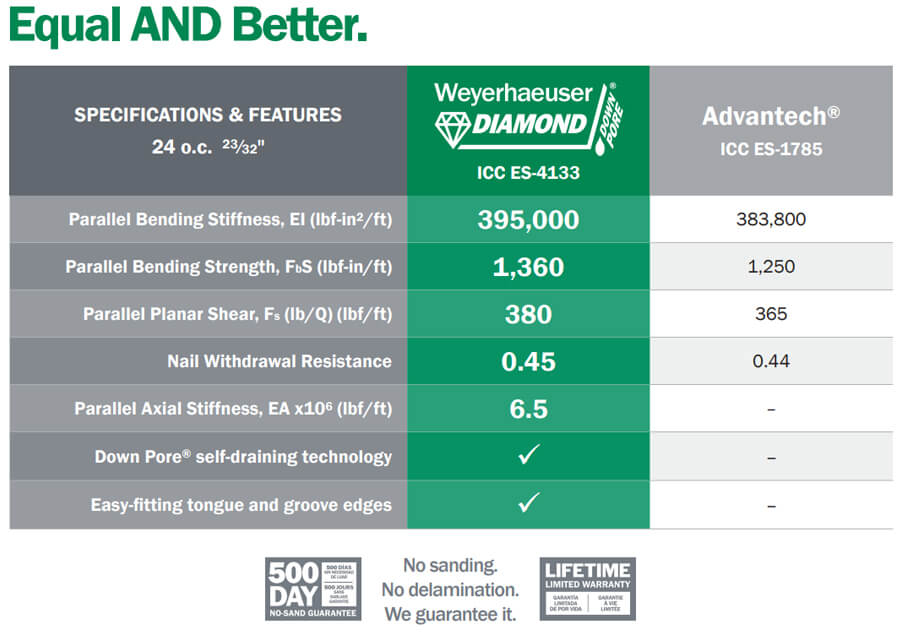 -Roughly 10% less than the cost of Advantech, and 10% less than Yellow Pine Sturd-I-Floor