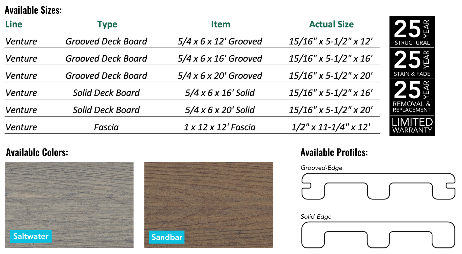 -Venture is a great product for those looking for the lowest cost option to replace wood while still keeping minimal maintenance.