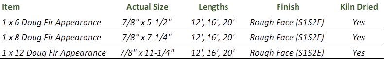 1x12 Doug Fir Appearance Boards: