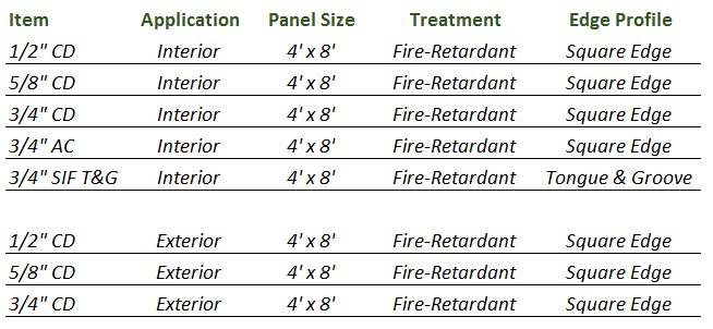 A: Use of exterior fire treated panels are recommended for applications where they are exposed to the weather, dampness, high humidity or cyclical wetting. For example, an open-air pavilion, multi-family decks, exposed roofs, etc.