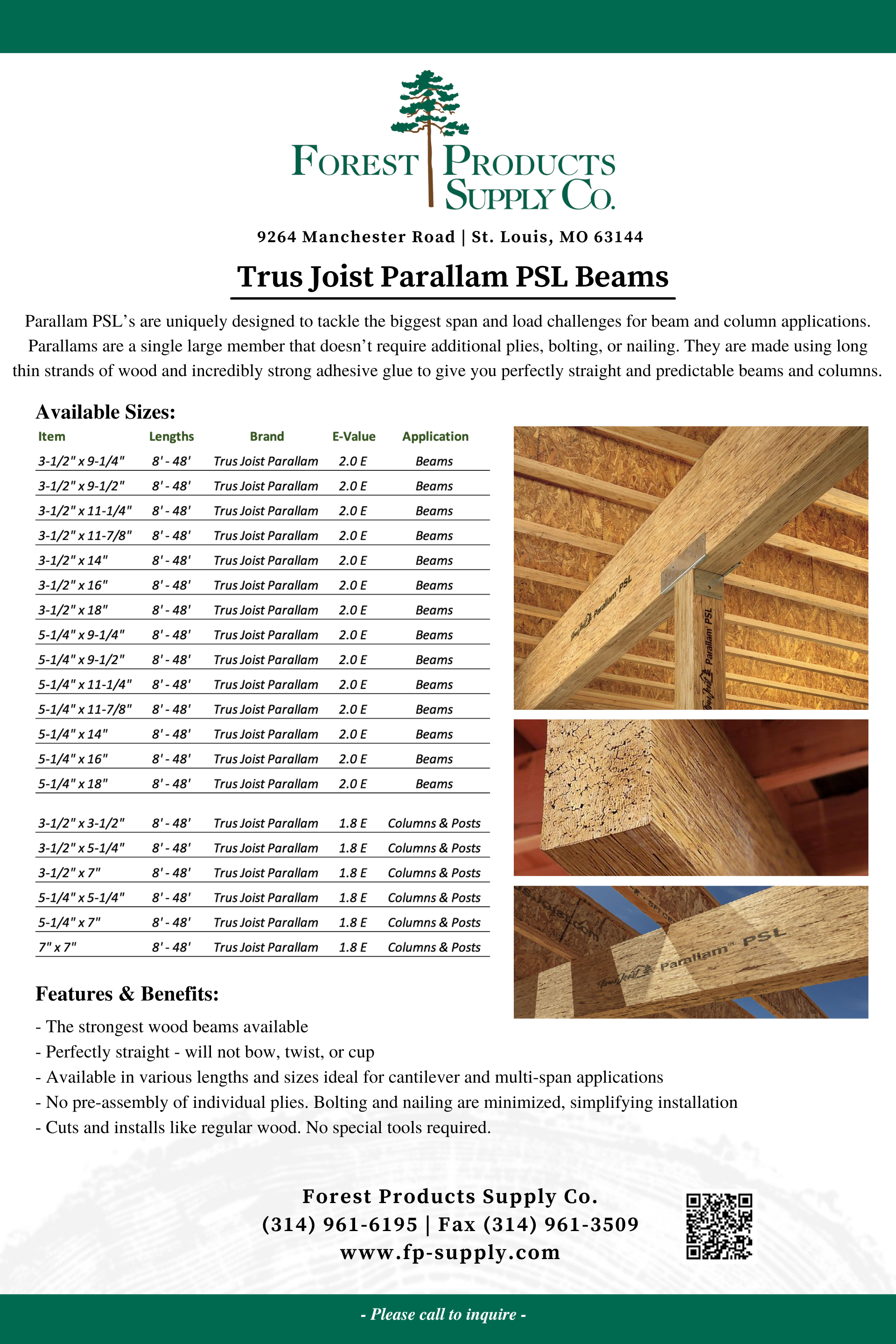Trus Joist Parallam PSL Beams