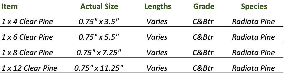 C&btr Radiata Pine is a clear solid board cut from some of the finest fiber in the world. It's lightweight, receptive, and easy to work with and is a excellent choice for a stain or paint grade finish.