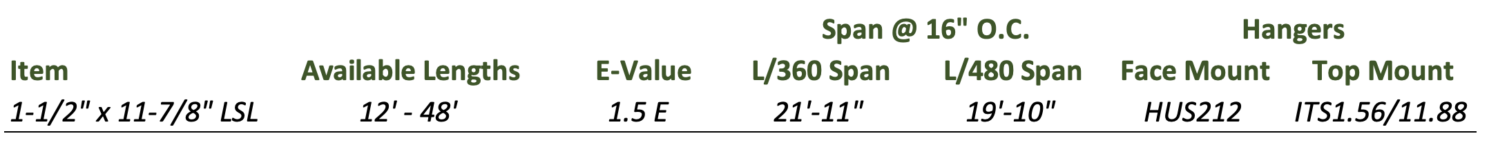 -Superior strength and span rating to 2x10 or 2x12 Yellow Pine