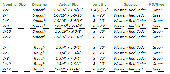 Cedar Dimensional Lumber