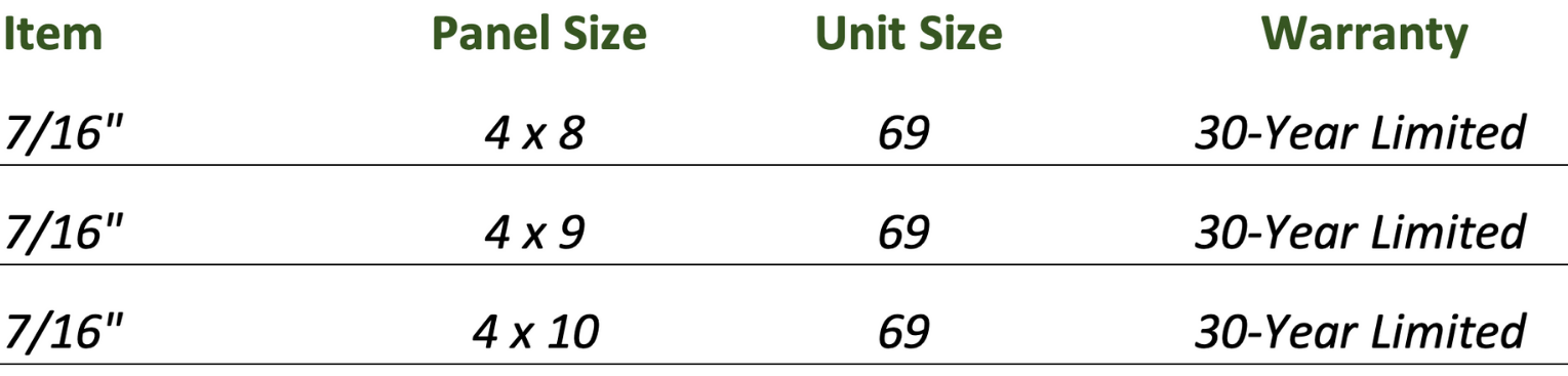 - Available in 4-foot nominal widths and 8-, 9-, or 10-foot lengths