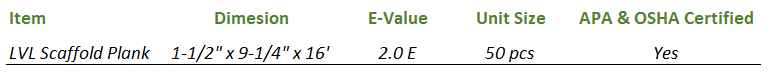 OSHA Certified LVL Scaffold Planks