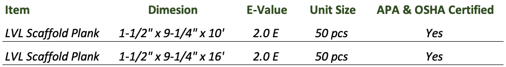 OSHA Certified LVL Scaffold Planks