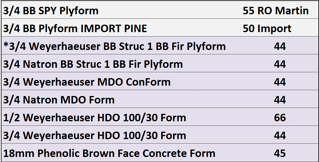 Plyform panels are designed for concrete pouring for foundations, bridges, tunnels, and more. Each panel has a special finish and release agent that is uniquely designed to maximize the number of pours and quality of finish.