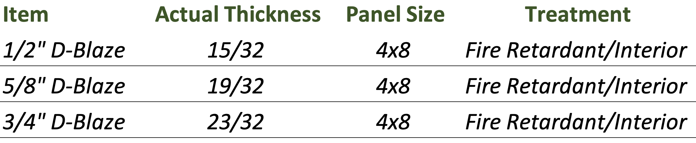 A: Use of exterior fire treated panels are recommended for applications where they are exposed to the weather, dampness, high humidity or cyclical wetting. For example, an open-air pavilion, multi-family decks, exposed roofs, etc.