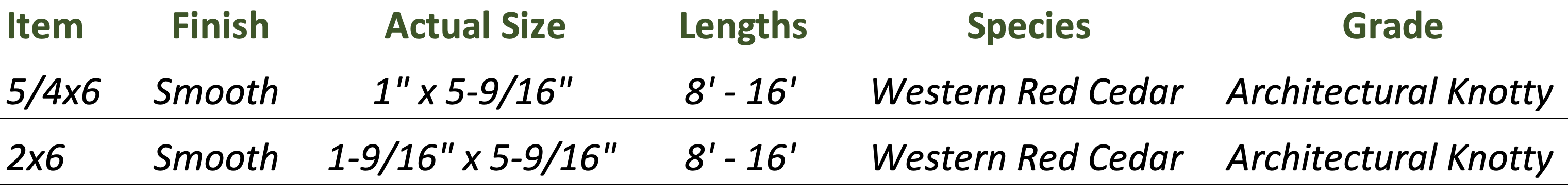 -True Western Red Cedar milled in British Columbia