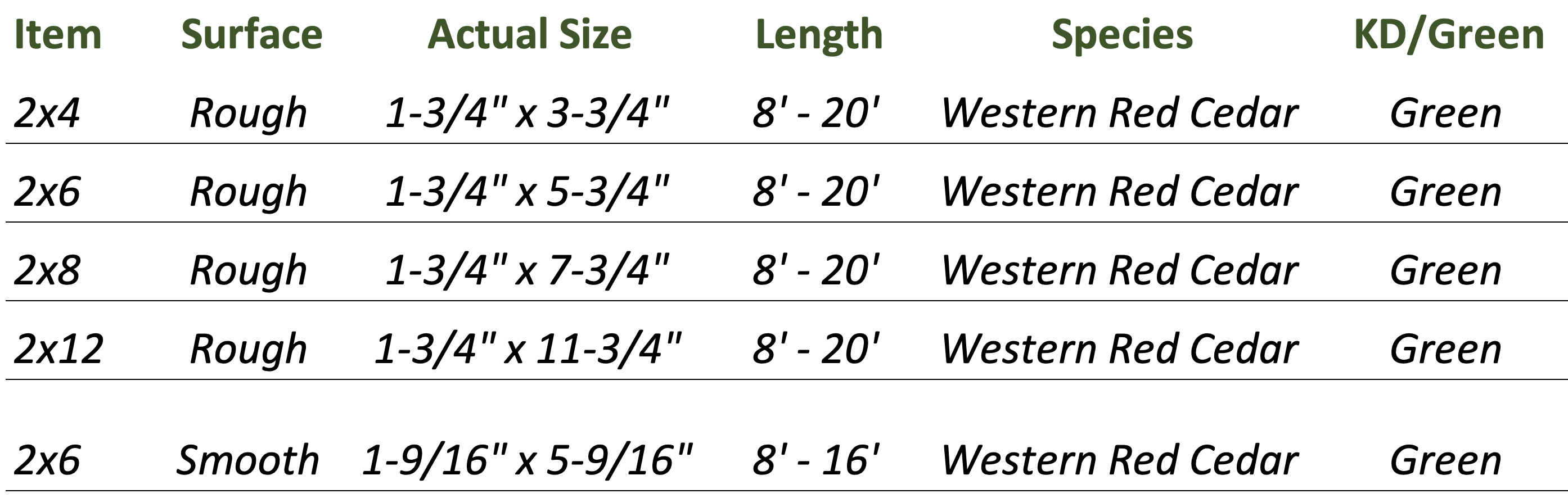 Cedar Dimensional Lumber