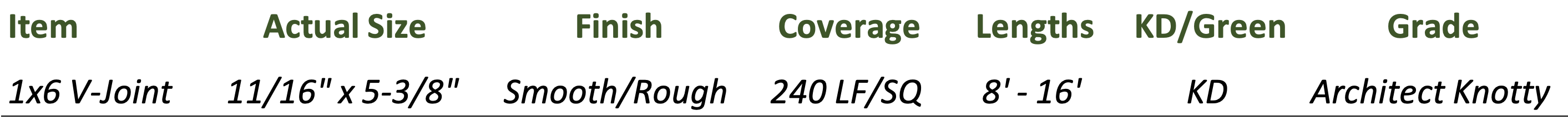 Applications: Exterior siding, porch and vaulted ceilings, interior paneling, cabinets