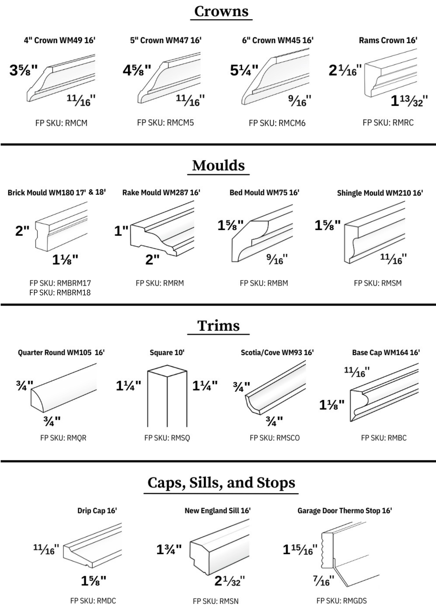 - Standard crowns of various heights used to trim the transition between wall and ceiling