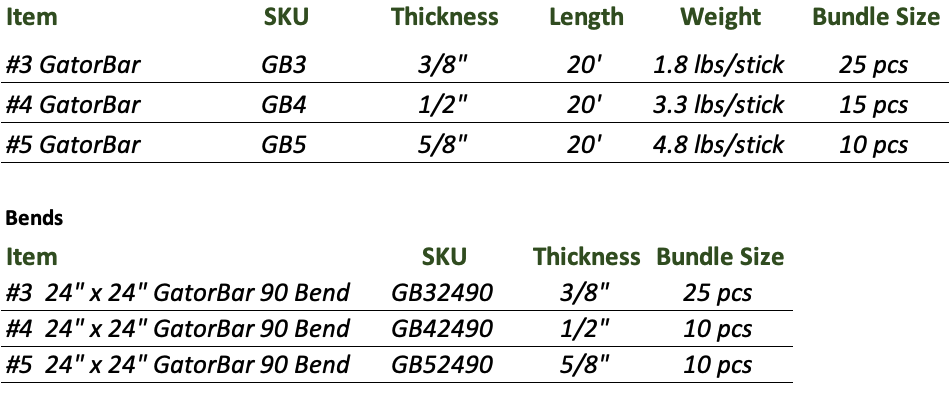 -#3 GatorBar is equivalent to #4 Steel